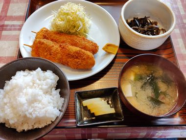 これも初めて頂くメニューですね〜。 今日は管理人は店に来る前から「デミグラスかつ丼」に決めていたので、そのままデミグラスかつ丼を食しましたが、お嫁さんはメンチ&キスフライ定食いっておきました!