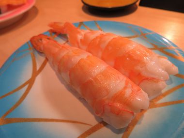 「甘エビ」 こちらはお嫁さんの大好物「甘エビ」です。 これも毎回頼んでいるような気がしますね。 お嫁さんは大の甘えび好きで、いつだったか金沢に旅行に行った時に、海鮮丼のお店に入ったのですが、そのときは丼の上が甘えびだらけの丼を頼んでいたもんね^^ 管理人は生のエビはそんなに好きではないのですが、好きなネタを自由にいくらでも食せるのがこういう寿司屋の良いところですよね。 |