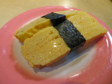 「玉子握り」 今日は一体何貫喰ったんだろう。 数えてみたら、最後の玉子を含めると22貫でした。 でも回転すし屋の皿の数にしたら11皿だから普通だね。 あと味噌汁も飲んでいるしね。 最後の〆は玉子の握りを頂くことが多いです。 玉子の握りも2種類ありまして、厚焼きと薄い玉子の握りの2種類。 多分だけど玉子はここで焼いたものではなさそうと思ったので、安いほうの玉子の握りにしておきました。 最後に甘めの玉子が口に入ると、なんだか落ち着くんですよね〜。 いや〜今日の海鮮さんもまいう〜でした。 また少し時期をおいてご来店したいと思いますよ。 |
