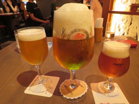 でもビールは、さすがキリンのお店だけあって美味しいね。 特に今の時期限定なのか、メガ盛りのビールなんかも置いてたね。 もちろん管理人はメガをご注文〜。 「岡」氏も「飯」氏もオリジナルのビールをご注文しておりました。
