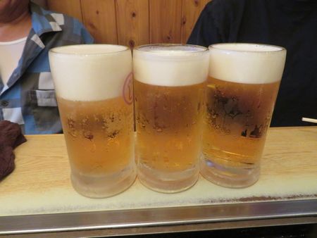 今日の集合は11:00。 時間の10分前には「岡」氏「飯」氏、管理人が集合しました。 そして、まずはビールで乾杯〜。 前回は、店員さんが美男美女だったけど、今日は普通の感じだったね^^;