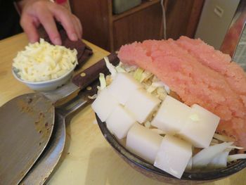 ![]() 明太餅もんじゃの初期状態 チーズもね |