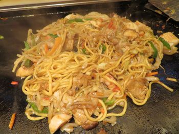このメニューは本来は自分で焼くのがルールみたいなんですが、今日はまことさんが焼いてくれました。 前回は管理人が焼いたのですが、もやしの入れ時を間違えて、もやしが炭に近い状態に・・・ でもやっぱりプロはすごいですね。