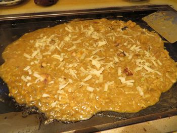 2カ月しか経ってなかったけど、やっぱりもんじゃはまいう〜だね。 今日は11:00〜13:30まで、約2時間半おりました。 いつもよりももんじゃの数が1品少ないね。