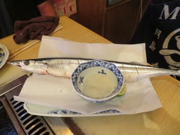 今日は特別メニューで「秋刀魚の塩焼き」がありましたのでご注文してみましたよ。 中くらいのサイズのサンマが一匹ですが、これで1,280円。。。 たけ〜。 今はサンマが不良で高級魚になりましたが、管理人が子供の頃は、サンマなんて一匹100円でしたから、10倍以上だね^^;