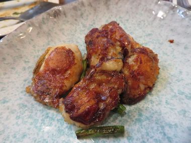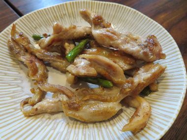 「セセリ」 こちらは鉄板焼きのメニューからの「セセリ」になります。 セセリは管理人の大好物。 セセリは鶏の首肉のことなんですが、食感が独特で、かつジューシーでとても大好きな肉なのです。 今回はニンニクの芽らしきもの一緒に炒めてくれているようですが、このニンニクの芽もいいアクセントになっていましたね。 このセセリは焼鳥屋などでもよく見かけますが、メニューにあると絶対に頼んでしまうんですよね〜。 今までセセリを頼んで失敗したことは一度もありません! 安定の旨さです。 |