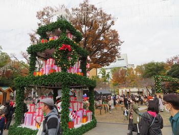 お店から日本大通りまでは横浜スタジアムを通り抜けてまいりますが、横浜スタジアムの広場はいつもと大分様子が異なっておりました。 すっかり広場はクリスマス仕様になっておりまして、クリスマスデコレーションの出店や、クリスマスツリーが出ており、子供連れの家族で賑わっておりました。