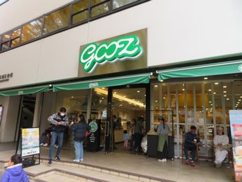 日本大通りにはGoozという名前のカフェがあります。 こちらにはパンやコーヒー、ソフトクリームなどが売られており、店先の簡易テーブルで頂くことができます。 昔からこのお店もあったような気がしますね。 しかも隣の地下には上州屋もあるので釣具を買ったことも何度もあります。