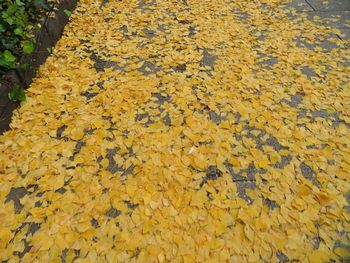 日本大通りから山下公園は徒歩で10分弱くらい。 実は山下公園沿いも銀杏並木があるのですよ。 ここの銀杏も丁度良く色づき、非常に良い景色。 先程の日本大通りもそうでしたが、歩道にはとこどころ、銀杏の葉っぱが落ちて絨毯のようになっているところもありました。