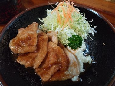 「生姜焼き定食(ランチメニュー)」 こちらはいつもお嫁さんがご注文する生姜焼き定食です。 前々回は帆立フライ定食を食して、久々に生姜焼き定食以外のメニューを食したのですが、また生姜焼き定食モードに戻ってしまいました。 でも相変わらずここの生姜焼きはまいう〜です。 今、文章を書いてて思いついたのですが、この生姜焼き定食に単品でメンチとか串かつなどをトッピングして、スーパー生姜焼き定食にしてもいいね。 今度試してみようかな。 でも次回は今回迷ってた、地鶏かつ定食ね^^ |