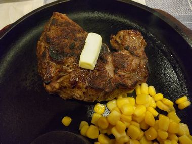 好きな焼き具合に仕上げるタイプ。 これは絶品です! またステーキのほうもレアで出してくれるのですが、もう肉自体の味+ソースが本当にまいう〜! お店で肉の塊を仕入れて、自分でカットしているんだとか。 久々に良いお店を見つけました!