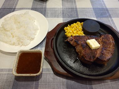 「得々ステーキ(300g)」 メニューを見ますと、内容は変わっていないようですが、お値段は少し上がっていたようですね。 今は米や肉など原材料が高騰しているので、メニューの値上げを責めてはいけません! 正直今までが安すぎたんですよね。 特にこのお店はね。 そして今日ご注文したのはいつもと同じメニュー。 お嫁さんは得々ステーキランチの200グラム、管理人は同メニューの300グラムです。 お値段は2人合わせて3,330円。 ここのステーキの美味さを考えると、これでも安いと思っちゃいます。 今日は土曜日ですので、ランチメニューの適用日。 ランチメニューだと値段は変わらないですが、サラダが付いてきます。 ちなみにご飯も大盛りで頼みましたが、ご飯増量に伴う料金の追加はない模様。 米も高いので、この値段には頭が下がります。 |