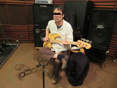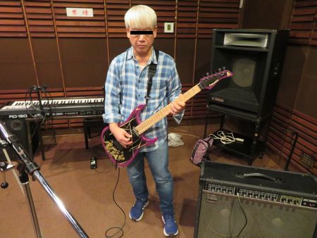 | こちらは練習中の「飯」氏です。 丁度最初の曲合わせを終えた後、個人練習時間に撮影しました。 練習の時に使用するエフェクターはいつもの通りだと思いますが、今日はアンプに具備されているコーラスをONにして音を出していたそうです。 曲合わせをおこなっている最中も、いつもよりも音が抜けてて良い音がするなと、「天」氏も管理人も気付いていたのですが、アンプのコーラスは今回初めてONにしてみたそうです。 敬愛する横関大先生はヘナチョコアンプでもとても良い音を出すことができるのですが、やっぱりギターを弾くテクニックだけでなく、音作りってのも演奏者に必要な能力なのですね〜。 |