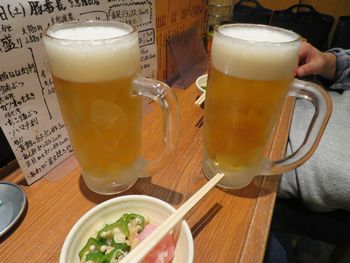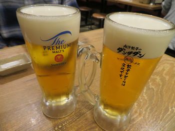 | 煮干中華そばの鈴蘭さんを後にしたのは17:00頃。 今日のコンサートのお目当ての「NAKED MACHINE」「RAZOR HIGHWAY」の出番は18:55からということで、まだ出演まで2時間弱あります。 ということで、時間が来るまで、一杯ひっかけてからコンサート会場に向かうことにしました。 まずは会場に近いほうが良いので、コンサート会場に向かって歩いていると。。。 なんと看板に「肉汁餃子製作所」と書かれたお店が! こちらのお店はチェーン店らしいのですが、餃子が売りのお店みたい。 まだ時間も早いためか、ラーメン屋同様、こちらも空いていましたので、すぐにご来店〜。 こちらのお店はチェーン店らしいのですが、管理人は初めて知りましたね。 横須賀にはこんな良いお店はなかなかないからね>_< お店の名称は「肉汁餃子」とありますが、餃子以外にもおつまみ系は非常に種類豊富です。 馬刺しがあったり、普通に魚の刺身、串焼きなど、お酒を呑むのにはピタ〜リの料理が目白押し! こりゃいいお店を見つけましたよ! 先程ラーメンをスープまで完飲しているので、軽めの料理を複数ご注文して、あとはビールを頂いておりました。 あまり呑みすぎてはいけないのですが、ついつい管理人はビールを4杯も呑んでしまいました。 「飯」氏は2杯呑んでおりましたが、ちゃんと自制できるのはすごいですよね。 ど〜しても管理人はビールがどんどん無くなってしまいます>_< |