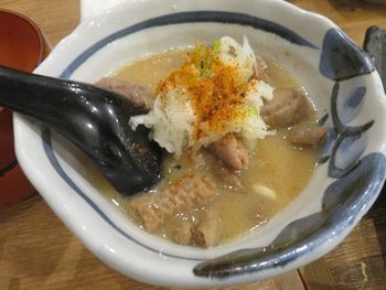 新宿三丁目駅に到着して多少道に迷いましたが、徒歩3分少々でお店に到着しました。 お店への到着は16:40頃。 今回は初めてのご来店ということもありましたので、一番のお薦めメニューと思われる「特製煮干中華そば」をご注文〜。 そして「飯」氏は「特製つけ麺」をご注文しました。 ご注文から5分少々でラーメンが到着しました。 お店の中も煮干しのかほりがただよっていましたが、ラーメンが来るとより煮干し臭が強まりますね。 非常〜によいかほりです。 今回の「煮干中華そば」は煮干し出汁と白湯のWスープということで、なかなか最近見ないタイプのスープになっています。 これがものすごくまいう〜でしたよ。 やはり最初に煮干しの出汁がガツンと来ますね! そして煮干しだけですと、尖った味になりそうですが(個人的には尖った煮干し出汁も好き)、白湯が合わさっているため、ほんのりマイルドさも加わっています。 これに合わせる麺は中太のちぢれ麺。 加水少な目なのか、歯ごたえがあり、歯切れのよいタイプ。 小麦のかほりが漂ってきそうな麺です。 この麺がスープと非常に合うんですよね〜。 こりゃ3.70の点数に相応しいまいう〜ラーメンでありました。 次回ここに来た時は、他のメニューも試してみたいですね^^ |