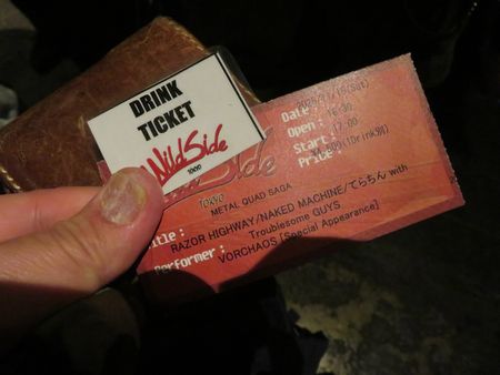 階段を地下まで降りますと、すぐ右側にWILDSIDEの入口があります。 入り口を入るとすぐに受付があり、ここでチケットを購入します。 今日のチケットは4,500円+1ドリンク券が600円。 合計5,100円です。
