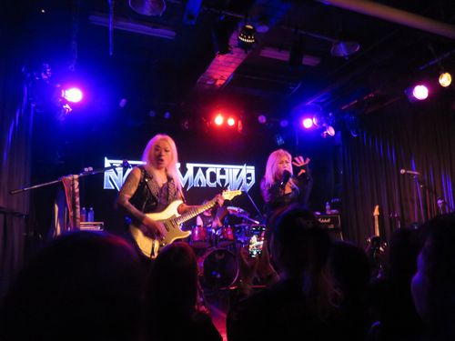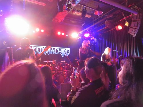| 今日は、全7曲を演奏しましたが、相当にかっちょいいですね〜。 事前に「飯」氏に楽曲を聞かせてもらっていたので、知っている曲もあっていつになく管理人もノリノリ(死語)になっておりました。 以前にKANちゃんさんの歌声を聞いたのは「無頼庵酒場」だったのですが、 そのときはAKIさんがメインでKANちゃんさんはコーラスなどをされていたため、KANちゃんさんが全力で歌っているのを初めて見ましたが、メチャメチャかっちょよかったです。 声質も綺麗で太く、ハイトーンも綺麗ですし、「無頼庵酒場」で見たお茶目さは鳴りをひそめて、 かっちょよいKANちゃんさんが全開でありました。(MCで噛んでしまうなど少しお茶目さは出ておりました^^) いや〜実際のコンサートを見ると、RAZOR HIGHWAYと同じくらいファンになってしまいますね! そしてドラムの本間大嗣さんですが、本間さんはEZOとかLOUDNESS、ANTHEMでもどラムを叩いていた方で、とても有名人です。 実際にドラミングを初めて見たのですが、61歳とは思えない位、ものすごくパワフルでかつ正確なリズム、それでいて結構技巧派で、きっとバンドの皆さんも安心して演奏できる感じなんじゃないかなと思いました。 こりゃ引っ張りだこになるのもうなづけます。 ギターやベースはテクニック的なことは管理人はあまり分かりませんが、お二人とも非常に安定感のある演奏で安心して聞いていられました。 里村源多朗さんも岡本啓祐さんも腕周りにはお絵描きがされており、アウトローな雰囲気を醸し出しています。 NAKED MACHINEの演奏中は我々はステージに向かって左前に陣取りましたが、ベースの岡本啓祐さんが目の前でした。 リズムなども安定していて動きも結構ありましたね。 立って弾くだけでなく、動きを付けるって結構難しいと思うんですよね。 こういうステージングも魅力の一つではないでしょうか。 またギターの里村源多朗さんは逆サイドで演奏されていたので、良く見えないことも多かったのですが、途中で目の前のアンプの上に立ってくれたので、超近距離で演奏を見ることができました。 流れるような指使いでものすごい安定感だなと感心してしまいました。 なんだかバンドとしてのまとまりもとても良いように感じましたし、これはファンになっちゃうね。 |