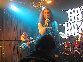 そして我らがRAZOR HIGHWAYの登場です。 我々の位置は先程は左端でしたが、今回はギターのOMMYさんの前、ステージに向かって右前に陣取りました。 一番前の列だったので、よっかかれるものもあって見やすかったです。