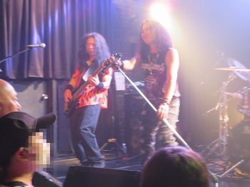 | 先程のダンダダンを出たのが18:40頃。 丁度コンサート会場では2バンド目が終わり、3バンド目の「NAKED MACHINE」開演に向けて機材転換を行っている時間です。 ダンダダンからコンサート会場までは徒歩で3分ほど。 あっという間に到着しました。 会場は大通り沿いにありますが、こういう会場は地下にあることが多く、WILDSIDEさんも地下にあります。 なので雑居ビルの1階の上のほうに小さな看板が出ているだけ。 ビルの奥に入るように細い通路があり、下に向かう階段があります。 階段の上が喫煙所になっているみたいで、ものすごくタバコ臭い>_< 大分古そうなコンサート会場ですが、何かハードロックのコンサートをするのに良い雰囲気の会場ですよ。 今日はハードロックの祭典なので、喫煙所の皆さんの恰好は皮ジャンとかTシャツが全部黒い感じね^^; こういうのすごく懐かしいです。 今日は「飯」氏も「RAZOR HIGHWAY」のTシャツ着てきていたし、管理人も「RAZOR HIGHWAY」のTシャツ事前に買っておけばよかった。。。 |