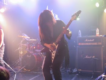 さて、RAZOR HIGHWAYは5人組ですが、ドラムは今回サポートの方だそうです。 以前「無頼庵酒場」で演奏していたMASAYAさんは、現在アメリカで「Kazha」というバンドのドラムとして活躍されています。