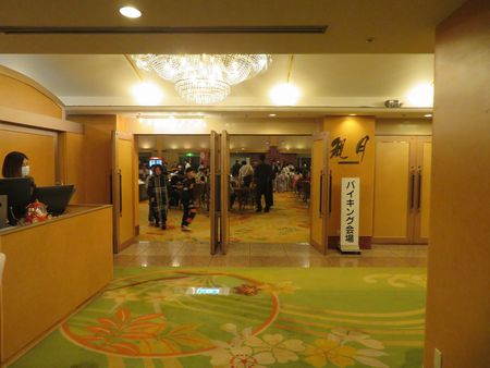 食事の時間は17:00からとなっていましたが、風呂に入って少しゆっくりしていたので18:20頃に食堂に参りました。 バイキングの会場は前回と同じ「観月」という広い宴会場。