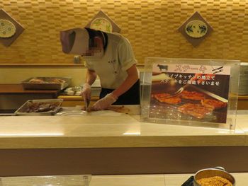 そうそう、前回もこの感じでしたよ。 ものすごく広い部屋の中央部分にテーブル席がいくつも並び、壁側にはシェフがいて料理を作ってくれています。 出来立ての料理を頂けるってのが一番まいう〜で良いですよね。