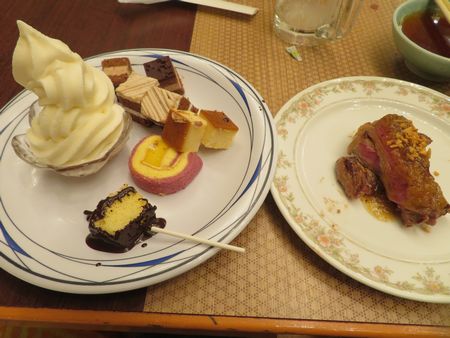 管理人のパターンとして、大体食事の途中にデザートに行っちゃうんですよね。 今日もやっぱりそうでした。 ついでにステーキもね。 そしてデザートはいつも決まってケーキをどっちゃり頂いてしまいます。 だってケーキ小さいんだもん。