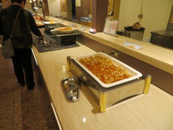 こちらが今日の管理人の朝食です。 おかず達は、ど〜してもウィンナーや玉子料理を取っちゃうんですよね。 毎回どこのホテルに泊まっても、いっつも同じメニューになってしまいます。