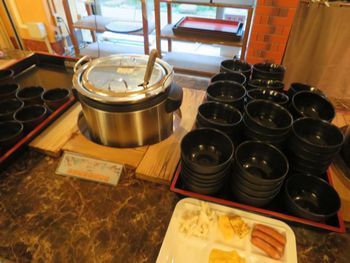 なので起床して8時前には朝食会場に向かいます。 会場は昨夜の夕食の部屋と同じでした。 朝食を食さない人もいるのか、朝は空いていましたね〜。