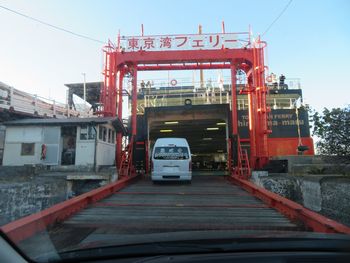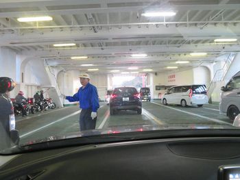 帰りも船に入るところをお嫁さんに激写してもらいました。 行きは先頭でしたが、帰りは船の丁度中ほどだったでしょうか。 全然関係ないけど、船の中の揺れでイモビライザーが起動している車がありましたよ。