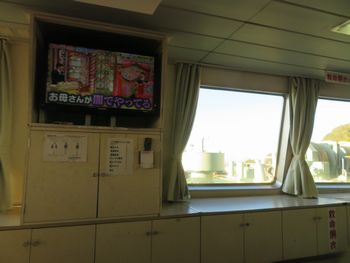 帰りも1階客室に座り、途中甲板に出て写真を撮りに行きましたが、行きに写真撮りすぎて、もう船からの景色に飽きてしまったようです。 帰りは写真撮影はほどほどにして、客室でまた〜りとしておりました。