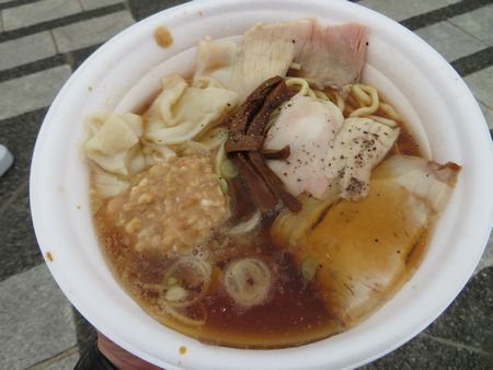こちらのお店は並ぶこと5分でラーメンを受け取ることができました。 先程の「中華そば ひらこ屋」以外はどのお店もこのくらいの待ち時間でラーメンをゲットすることができます。 全店このくらいの待ち時間なら良いのにね^^