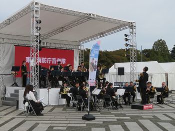ラーメンフェスタ会場の入口を入って左側には、ステージが設営されておりました。 こちらでは色々なアイドルグループ、ブラスバンドなどが演奏をしておりましたよ。 我々が到着してすぐには、東京消防庁のブラスバンドの皆様が演奏をしておりました。