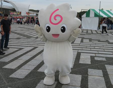 会場内を歩いていると、係員さんに連れられた東京ラーメンショー公式マスコット「なるとちゃん」を発見しました!(手で引っ張られないと一人では前が見えずに歩けないみたい^^;) こんなキャラクターいましたっけね。 ホームページを調べてみると、2019年位からいた模様です。