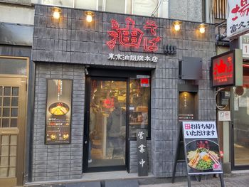 <2019.10.10> 本日はセ・リーグのクライマックスシリーズ ファイナルステージ 巨人VS阪神を観戦しにやってきました〜。 試合開始は18:00なので、その前に腹ごしらえして一杯飲んでから東京ドームに出陣します。 今日も「岡」氏と2人で出陣です〜。 試合会場が東京ドームなので、一番の最寄は水道橋駅になるのですが、きっと野球観戦の客が周辺の飲食店を占拠しているかもしれないと予想し、今日は東京ドームまで徒歩15分位のところにある九段下にやってきました。 九段下なんて昔にコンサートで武道館に来たとき以来なので、もう10年以上ぶりになりますよ。 さすがに九段下でまいう〜なラーメン屋なんて知らないので、食べログで「九段下」「ラーメン」で検索してNo.1の店に行くことにしました。 今日の「八咫烏」さんは、2019.10.14時点で食べログの点数が3.75と高得点! これならば間違いないでしょう! お店は九段下駅から徒歩5分位のところにあります。 管理人は営団地下鉄の半蔵門線で九段下駅に行ったのですが、お目当てのラーメン屋に行くには7番出口で降りると近いみたい。 でも駅を降りて構内の案内図を見ると、出口は1〜6しかない。。。 7番出口はどこ〜!? 改札で駅員さんに聞いてみると、どうやら7番出口は東西線の専用の出口なんですって^^; しょうがないので、駅員さんにもらった地図を頼りに7番出口へ。 大分迷いましたが、待ち合わせの14:00前に出口に到着しました〜。 お店は大通りから1本入った細い路地にひっそりと佇んでいます。 大通りからだと、見落としてしまいそうな感じ。 実際管理人は見落としてしまったのですが、「岡」氏が暖簾を発見してくれたので、無事に到着することができました。 お店の外観はちょっとお洒落な雰囲気ですね〜。 なんだかバーのような感じがしなくもありません。 「八咫烏」という提灯がなければラーメン屋だと思わないかもしれませんね。 店内もお洒落な感じがしますよ〜。 入口を入ったすぐ右側には4〜6人位が座れそうなテーブル席が1台。 あとはL字型のカウンター席になっていますね。 カウンター席は恐らく10席位かな。 標準的な広さのラーメン屋さんです。 さ〜それでは店内へ。 入口を入ってすぐ左側に券売機があります。 食べログを見たときは「醤油ラーメン」の写真ばかりに目がいってしまっていたので、てっきり醤油ラーメンしかないのかと思ったら、塩ラーメンもありましたね。 でもそんなことは知らずに券売機を見ると、黒ラーメンと白ラーメンの2種類がありました。 どういう違いなのか分からなかったのですが、「岡」氏は「白」をご注文。 管理人は「黒」をご注文〜。 2人共、トッピング全部乗せの「TOKUSENRAMEN」というのにしておきました。 ご注文から約5分位でラーメンが到着〜。 まずは「黒」が到着しました〜。 う〜んなんという綺麗な醤油ラーメンでしょう。 スープは澄んでおり、脂分が表面でキラキラしています。 麺も丁寧に折りたたまれてスープの中で泳いでいますよ。 そして次に「白」のほうが到着しました。 すると、なななんと! こちらは「塩ラーメン」のようです。 こちらも醤油と同様に透き通ったスープが目を引きますね。 こちらの「白」のスープを飲ませてもらったのですが、非常にあっさりした中にも出汁の上品な味わいが広がります。 これはかなり上質な塩ラーメンですね〜。 塩ラーメンは普段はあまり食しませんが、これならば是非食してみたいと思いました。 一方管理人の「黒」の醤油ラーメンのスープは・・・ お〜こちらも超まいう〜。 出汁は塩ラーメンと同じなんでしょうかね〜。 こちらも上品な出汁ですが、特徴的なのは醤油ダレの味でしょう。 よくある醤油ダレとは全然違いますね。 コクがあるというのでしょうか、醤油本来の味が全面に出ていると言うのでしょうか。 醤油ダレの特徴的な味わいが非常によく引き出されています。 これもまいう〜ですね〜。 これに合わせる麺は、中細のストレート麺。 麺をよく見てみると、なにやら全粒粉のような粉が一緒に練り込まれているのが分かります。 麺はかん水は少な目でちょっと博多ラーメンのようにポソポソした食感の麺です。 こちらも小麦の風味が漂ってきそうなまいう〜麺です。 これは高得点なのは頷けますね〜。 ちなみに全部乗せのトッピングは「チャーシュー、煮玉子、ワンタン」の3種類。 チャーシューは赤身を帯びており、半生のようなチャーシューですね。 薄くスライスされており、味も繊細な感じです。 そしてワンタンも具材が多目に入っていて、非常にまいう〜。 これは次回来たときも全部乗せにしちゃいそうです。 個人的には醤油の「黒」よりも塩の「白」のほうが僅差で好みだったかな〜。 東京都千代田区九段北1-9-2 エクセントビル九段 1F TEL.03-6256-9929 |